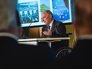 „Trotz wachsender Zweifel und Europaskepsis bleibt die Europäische Einigung weiterhin wichtig“, ist auch Wolfgang Schäuble überzeugt. „Die Europäische Einigung ist die beste Idee, die die Europäer im 20. Jahrhundert hatten und sie ist die beste Vorsorge für das 21. Jahrhundert“, so der Bundesfinanzminister. „In der globalen interdependenten Welt wird Europa nur gemeinsam eine angemessene Rolle spielen können. Jeder einzelne europäische Staat ist im globalen Maßstab nicht hinreichend relevant“, betonte Schäuble. Die großen Fragen wie Globalisierung, Klimaschutz und Digitalisierung ließen sich nicht national bewältigen. Auch in der Migrationspolitik, der Sicherheits- und Außenpolitik sowie in der Wirtschafts- und Währungspolitik müsse Europa die Probleme gemeinsam besser lösen. „Es ist wichtig, dass wir die wachsende Skepsis durch Erfolge und Effizienz überwinden. Ich bin sicher, dass mit jedem konkreten Erfolg die Attraktivität des europäischen Projekts auch für heute Zweifelnde wieder größer wird“, unterstrich Schäuble.