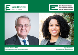 Ophélie Omnes, Präsidentin der UEF Frankreich, und Rainer Wieland, Präsident der Europa-Union Deutschland erklären: „Wir müssen die Gelegenheit nutzen, ein starkes und geeintes Europa zu errichten, um einem von seinen inneren Spaltungen geschwächten Europa den Rücken zu kehren und eine gemeinsame Wiederbelebung des Kontinents zu erlauben.“