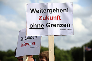 Auch der Jugendverband der Europa-Union, die Jungen Europäischen Föderalisten, organisierten in den vergangenen Jahren zahlreiche Aktionen für offene Grenzen innerhalb der EU. Unter dem Slogan „Don’t touch my Schengen“ rief die Jungen Europäischen Föderalisten 2016 zu einer Öffnet externen Link in neuem Fenstereuropaweiten Kampagne auf.