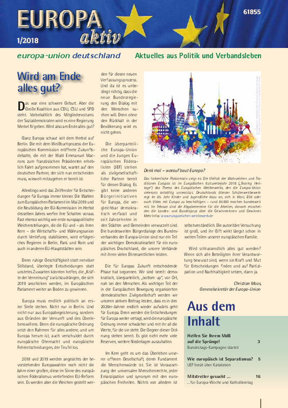 Neu erschienen: Mitgliedszeitschrift Europa aktiv 01-2018
