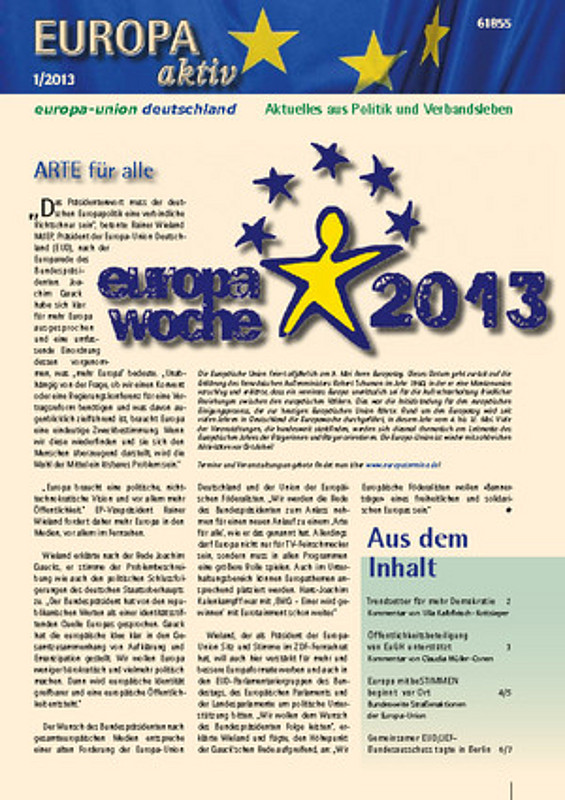 Die neue Ausgabe unserer Mitgliederzeitung ist da. In Europa aktiv 1-2013 geht es u.a. über unsere Kampagne Europa mitbeSTIMMEN, das mangelhafte Wahlrecht für EU-Bürger in Deutschland und die Europäische Bürgerinitiative "Let me vote". Außerdem lesen Sie dort zahlreiche Berichte aus unseren Landes- und Kreisverbänden.