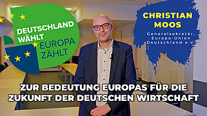 In den Wochen bis zur Bundestagswahl erklären Expertinnen und Experten in zehn kurzen Videos, warum die Bundestagswahl auch für die europäische Politik entscheidend ist: Deutschland wählt, Europa zählt. Ziel der Kampagne ist es, Bürgerinnen und Bürger zur Wahl zu motivieren und dazu anzuregen, bei ihrer Entscheidung auch die europäische Dimension der für sie wichtigen Themen zu bedenken. Die Kampagne gibt dabei keine Wahlempfehlungen ab, denn die Initiatoren agieren strikt überparteilich. Jede Stimme für eine demokratische Partei ist eine Stimme für Europa.