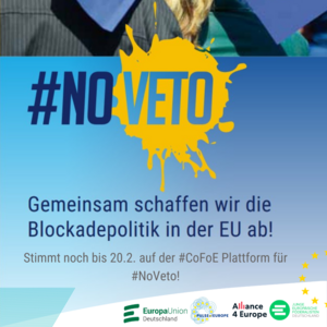 #NoVeto: Abschaffung der Einstimmigkeit im Rat der EU auf der CoFoE-Plattform unterstützen