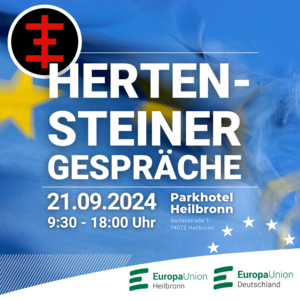 Die Europa-Union Heilbronn lädt gemeinsam mit dem EUD-Bundesverband und weiteren Partnern zu einer neuen Ausgabe der Hertensteiner Gespräche ein. Themenschwerpunkt sind die Wahlen in Europa und den USA. In mehreren Gesprächskreisen können sich die Teilnehmenden mit ausgewiesenen Expertinnen und Experten aus Politik und Zivilgesellschaft austauschen. » weiterlesen